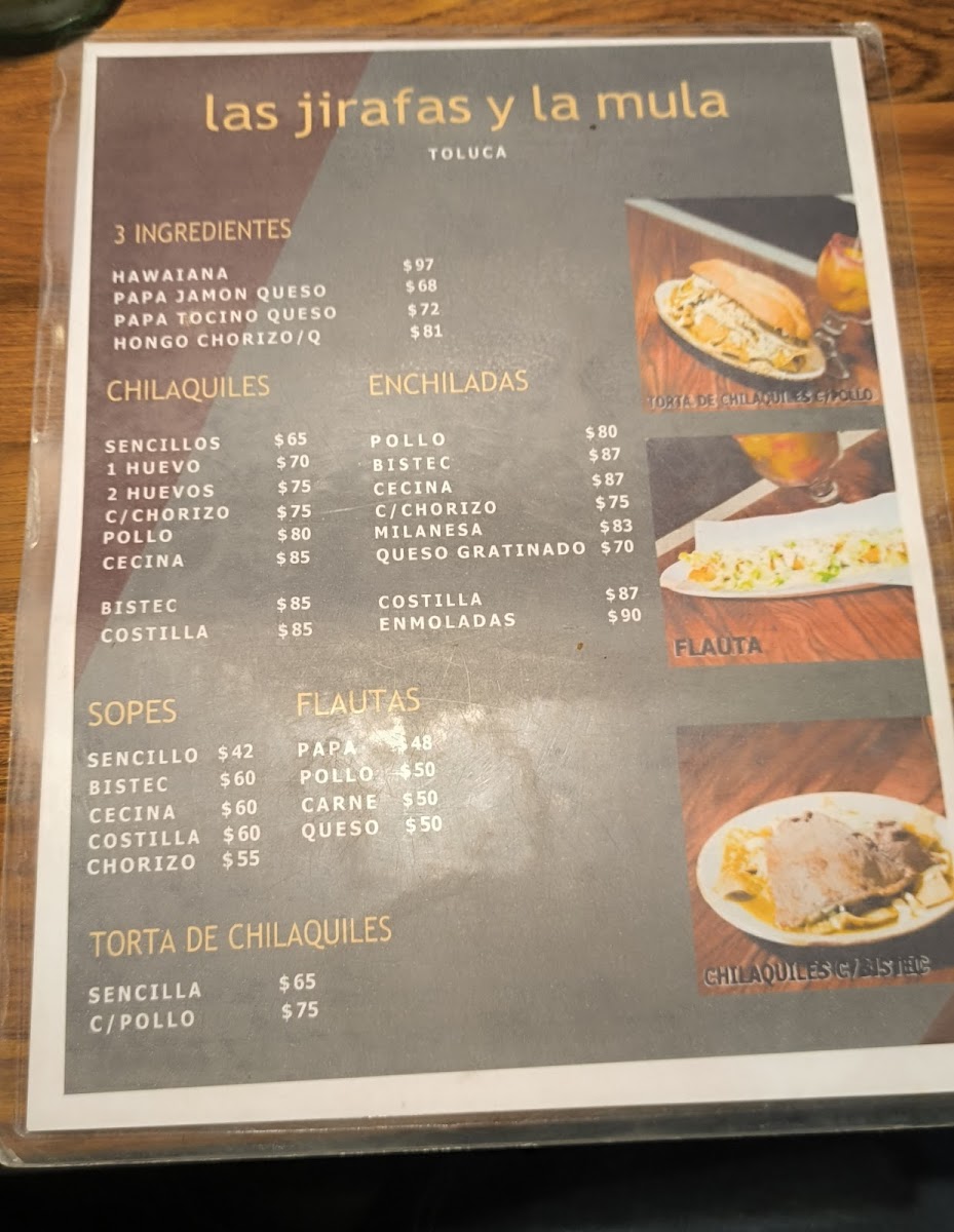 Welcome to Las Jirafas y la Mula in Toluca, a gem where authentic Mexican flavors come alive. Nestled in the heart of Toluca de Lerdo, this vibrant eatery specializes in delicious, generously-sized quesadillas that have become the talk of the town. Customers rave about their rich flavors, often noting the quality of the fillings. While some patrons suggest a bit more filling, the overall consensus highlights satisfaction with portion sizes.